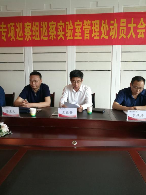 专项巡察组组长王德静就巡察工作做动员讲话,全面阐述了开展校内专项巡察工作的重大意义、主要任务、程序方法和基本要求。王德静组长指出,要充分认识开展专项巡察工作的重要意义,一是开展巡察工作是上级有关精神的必然要求,二是开展巡察工作是推动我校融合转型发展的重要政治保障,三是开展巡察工作是加强和改进党员干部工作作风的现实需要,四是开展巡察工作是将党内监督和群众监督充分结合的有效途径。王德静组长指出,巡察工作要突出重点,准确把握巡察工作的主要任务和方法,巡察工作坚持问题导向,突出政治巡察,高举纪律戒尺,严格按照《中共河南牧业经济学院委员会巡察工作暂行办法》明确的巡察内容和工作程序和有关要求开展工作。王德静组长最后指出,此次巡察工作是校党委专项巡察组和实验室管理处的共同政治责任,要共同努力,严格遵守巡察纪律,顺利完成巡察工作。王德静组长还公布了巡察组在巡察期间的举报电话、电子邮箱和举报意见箱。