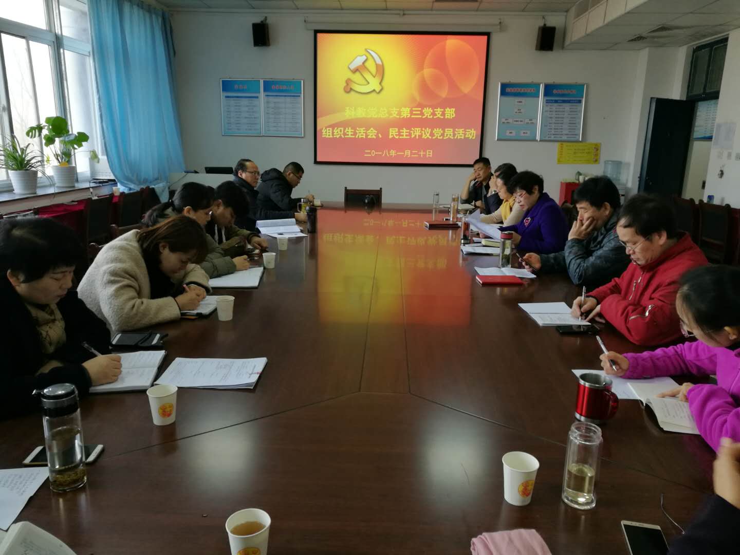 按照学校党委《关于召开2017年度处级以上领导班子党员领导干部民主生活会、组织生活会和开展民主评议党员的通知》文件要求,2018年1月20日上午,科教党总支第三党支部在龙子湖校区实验研究中心会议室召开了2017年度民主生活会和组织生活会,支部全体党员参加了会议,向瑞平教授作为无党派人事代表参加了会议。会议由党支部书记赵敏主持。